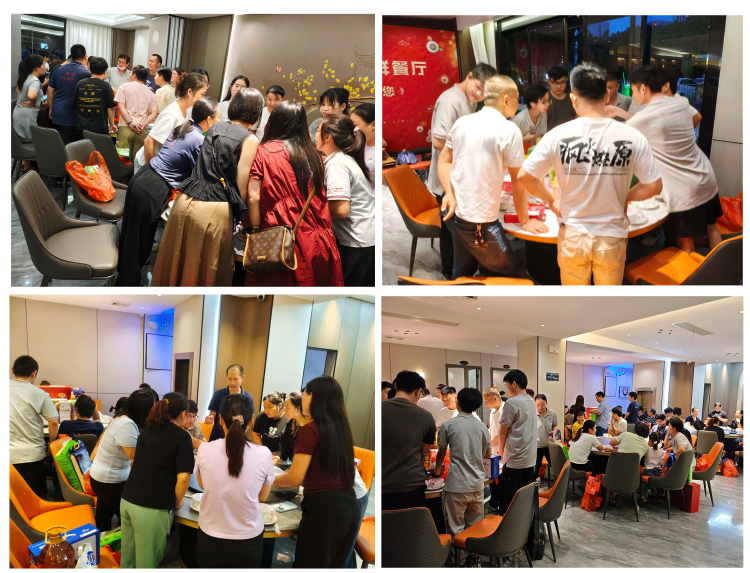 中秋晚宴的重头戏——博饼,正式开始。此时,每个人都难以抑制激动的心情,围在桌子旁,等待着自己发挥最佳手气的时刻。清脆的骰子声不绝于耳,激动的欢呼声、喝彩声此起彼伏,丰盛的奖品花落各家。
