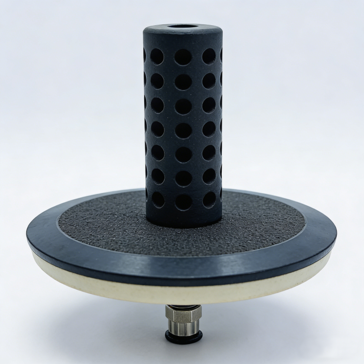黑色多孔氧化铝陶瓷真空吸盘是针对“静电敏感、光学敏感、环境严苛”等超高端应用而生的特种解决方案。 它是普通多孔陶瓷吸盘的“升级版”或“功能定制版”,通过材料复合技术,在保持多孔吸附优点的同时,赋予了抗静电和消光防反射两大核心附加价值。