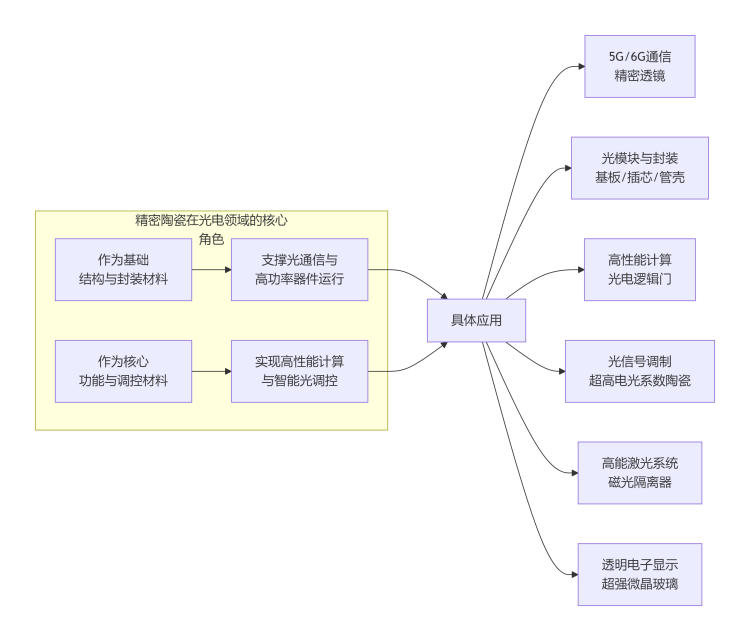 精密陶瓷是光电领域的关键基础材料,凭借高透光、高热导、低热胀、高绝缘、高稳定、抗腐蚀、抗辐照等核心优势,广泛用于光通信、激光、红外、光学成像、半导体光电设备等场景,是实现光电系统高性能、高可靠、小型化的核心支撑。