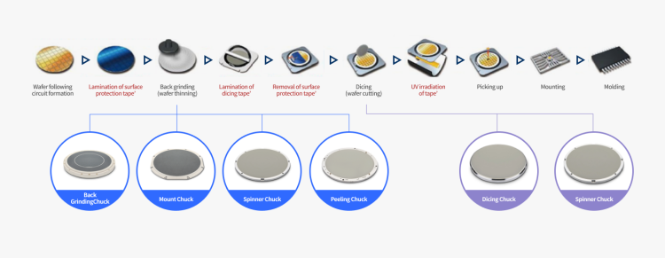 陶瓷真空吸盘是由多孔陶瓷材料制作,孔径分布均匀,内部相互贯通,表面经研磨后,光滑细腻,平整性好,广泛应用于硅、蓝宝石、砷化镓等半导体晶圆的制造环节。